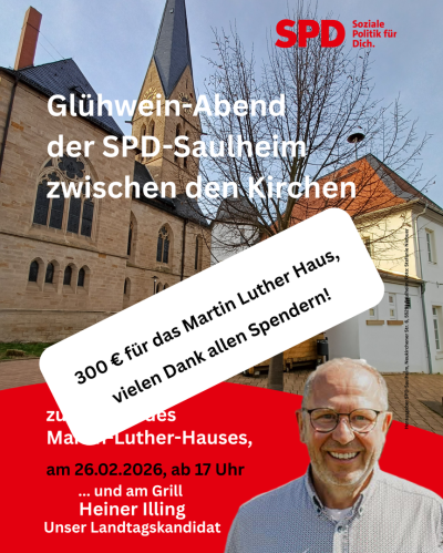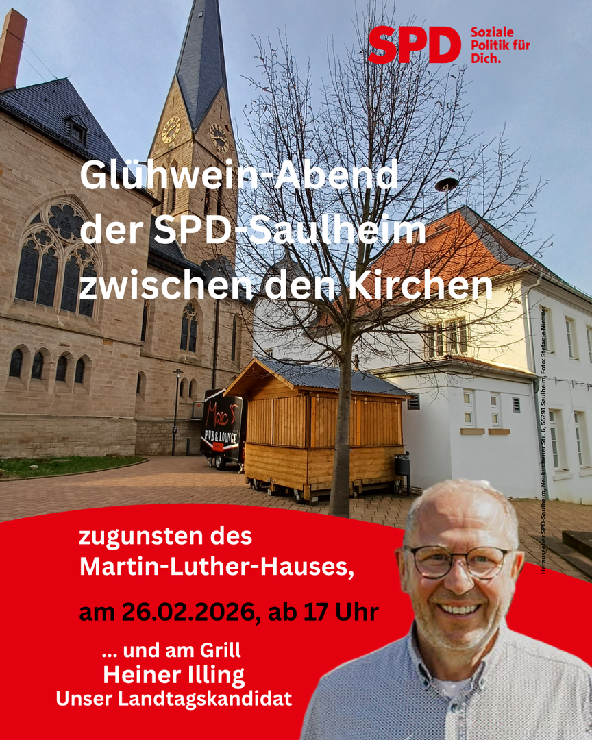 Am 21. Mai 2025 wurde Heiner Illing als Direkt-Kandidat des Wahlkreises 34 (VG Wörrstadt, VG Wöllstein, VG Alzey-Land, Stadt Alzey) gewählt. Der SPD-Ortsverein Saulheim gratuliert Heiner ganz herzlich und freut sich, dass mit ihm ein so erfahrener, engagierter und kompetenter Vertreter für die SPD ins Rennen geht. Wir werden ihn nach besten Kräften unterstützen. Glück auf!
